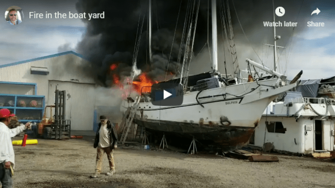 So this happened (I videoed this) Denny and I were in Ensenada working on Sea Bella in January when a boat 3 down from us caught fire. Denny accually was looking in the back transom of the boat and alerted the guy welding on the bottom to the fire.
