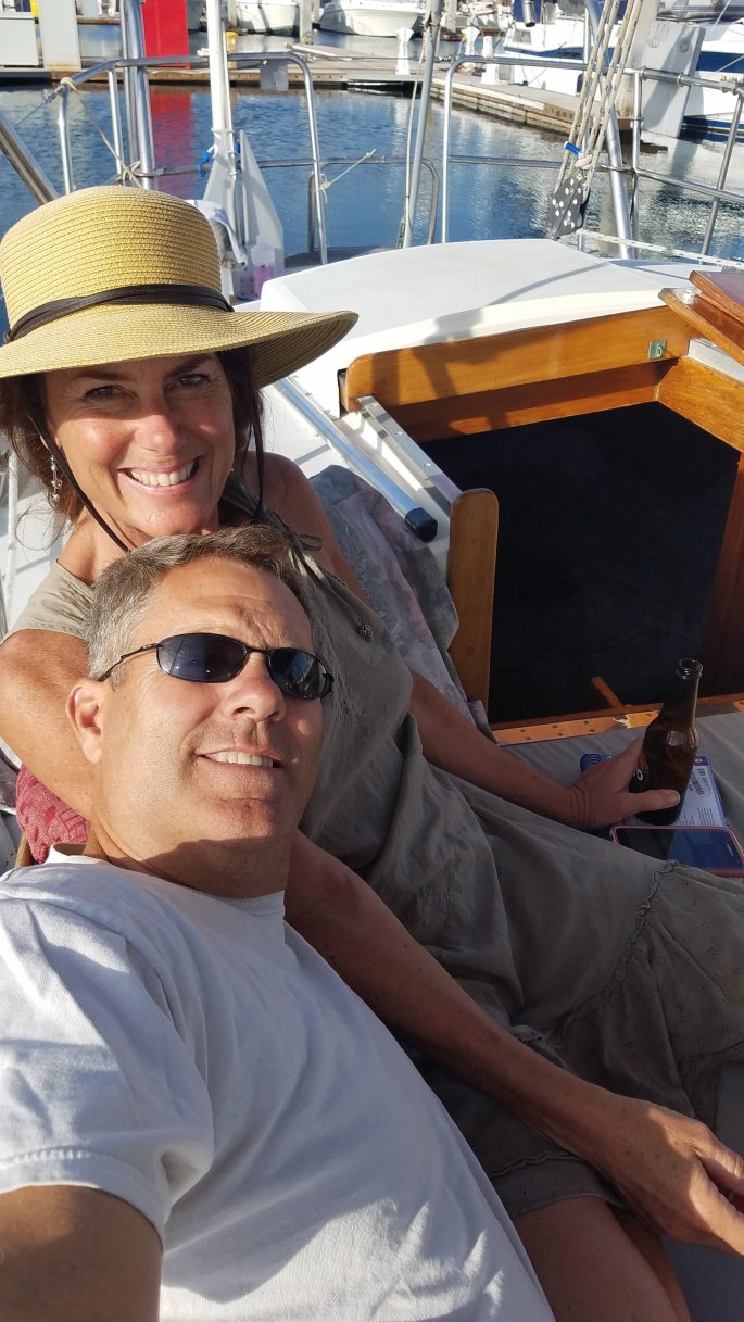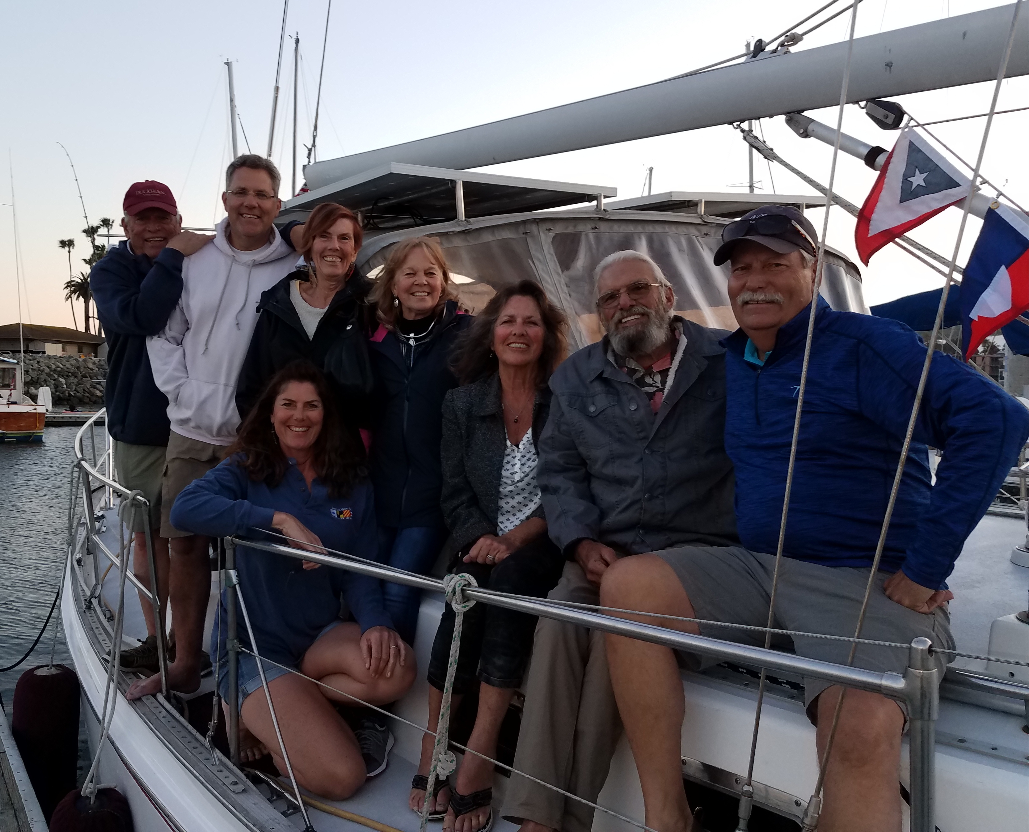 Thank you to great family and friend supporters! Ashley, Jim and Judy Erwin, Lonnie Martin, Mark and Becky Ashburn, Denny and Susan Osburn. It was a beautiful evening at the Port of SD. Funny stories shared, such as: docking at this major port via only an app, going up the mast, dogs on board, Scott’s sprained wrist story of “Ass over tea kettle”, Kathy’s lessons on knots, windlass, anchoring etc. Of course, prepping and provisioning for journey North with Lonnie.