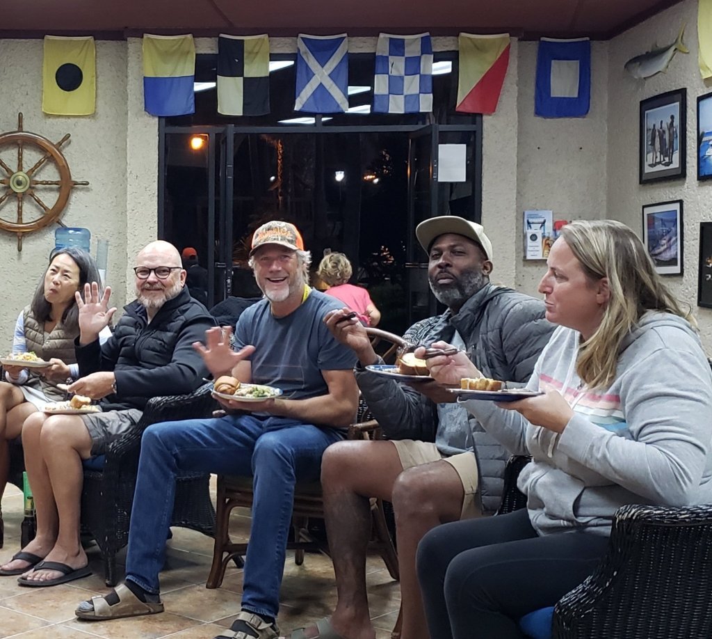 The first video below shows us snorkeling in Swallows Cave and then diving in Shark Tooth Cave which we we entered 40 feet down. We were back in the cave about 100 yards and Kathy finally pulled on Scotts fin and motioned to she didn’t want to go back any further. Agreed, as it was getting a bit tight and our lights weren’t near good enough for how dark it was. 🙂
