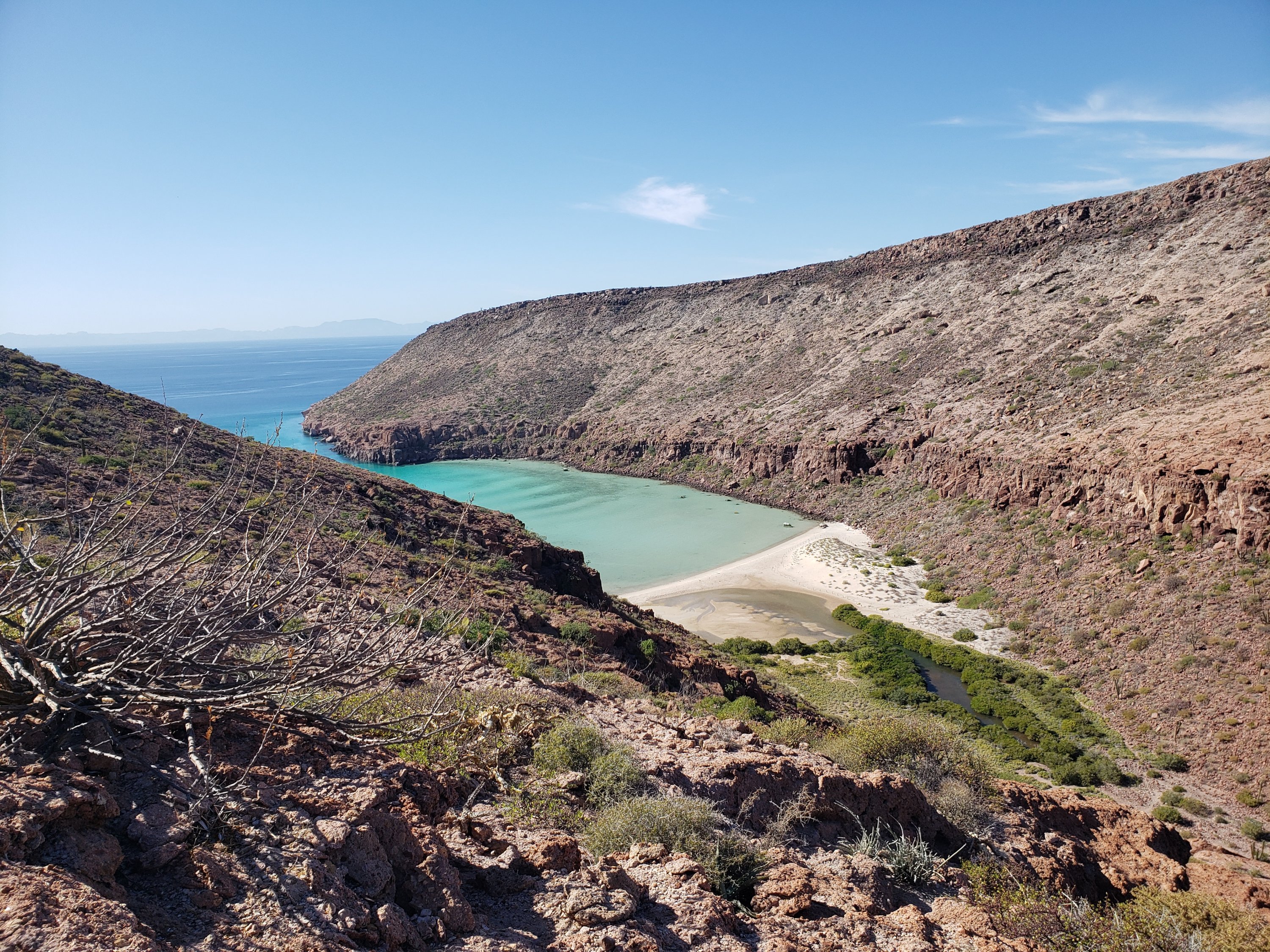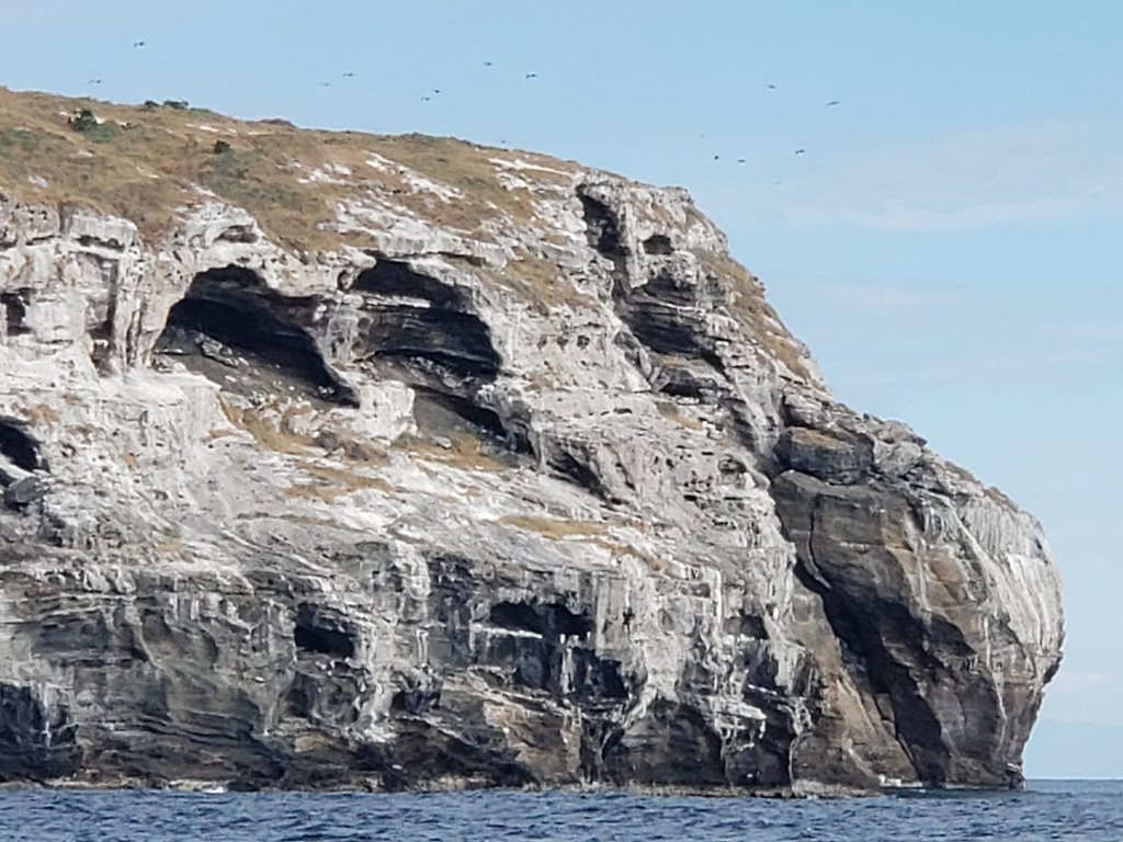 As we sailed, 93 miles south of Mazatlan, we saw tens of thousand sea birds circling overhead this small volcanic island. We noticed the dramatic hardened lava flows on the cliffs. These are perfect little shelves for the nesting booby birds. Once anchored, we paddle boarded to the small beach and hiked to the volcanic caldera, now filled with fresh water for the birds and iguanas (the only largish animals on the island).