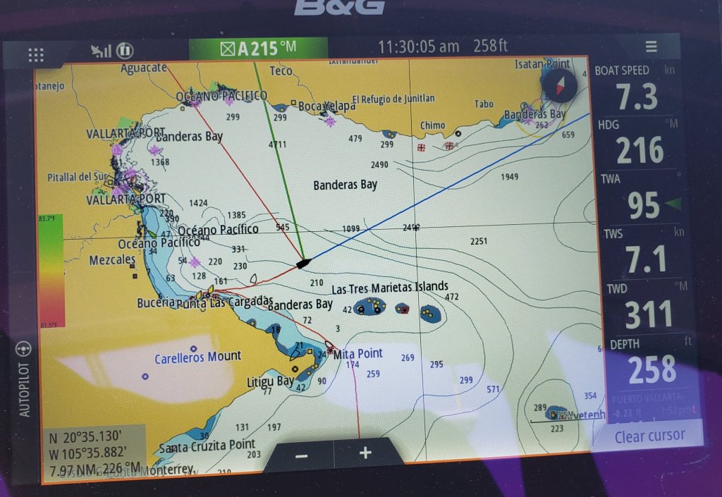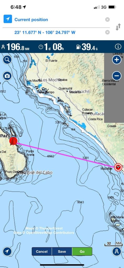 We have now traveled over 1500 miles mostly over the last 30 days. Currently we are in a slip in Barra de Navidad in Jalisco. We are now south of Latitude 20 (hot here today). This is some interesting data (especially for the California folks that are north of conception that think it blows stink all the time). Following is it an estimate of how the wind has blown for us since leaving California: 5% of the time over 20 knots (never saw over 28) 15% of the time 15-20 knots 30% of the time 10-15 knots 50% of the time less than 10 knots (most of that we barely sailed or motored) We waited in multiple locations for wind to keep from motoring. (Hate motoring) Weather predictions are inaccurate no matter where you’re getting your info. PredictWind, Windy and local nets were most helpful. Navigation Aids: Electronic chart including Navonics and C-Map are great but not always accurate when it comes to harbor entrances, or remote anchorages. We are really hesitant to enter any new anchorage at night. We have even seen fisherman in pangas sleeping in their boat at night without lights. Radar has been a huge tool at night especially with local fisherman running about. VERY FEW navigation tools (bouys, daymarkers, shore lights) since leaving the United States. No Coast Guard either! Fishing gear can be offshore in the form of nets and long lines. Some miles long and unmarked. We have had to cut off nets/fishing gear multiple times that has hung up on Sea Bella. We try not to travel in heavily fished areas at night and if we do, we go far offshore where the water is over 600+ feet deep.