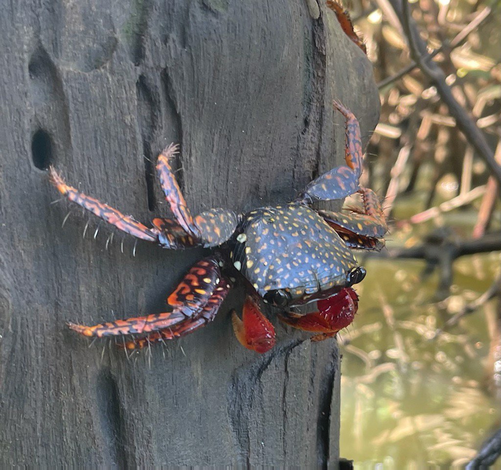 We left Barra de Navidad early December and spent a few days anchored at Bahia Tenacatita just up north a bit. Crazy jungle! A sleepy little bay with access to some awesome mangrove rivers/swamps. A group of 8 cruisers were hanging out here. After trekking through the mangroves for about 5 miles we came to another little beach where we fished with a few locals! Crocs, crabs, egrets, herons and a few fish.