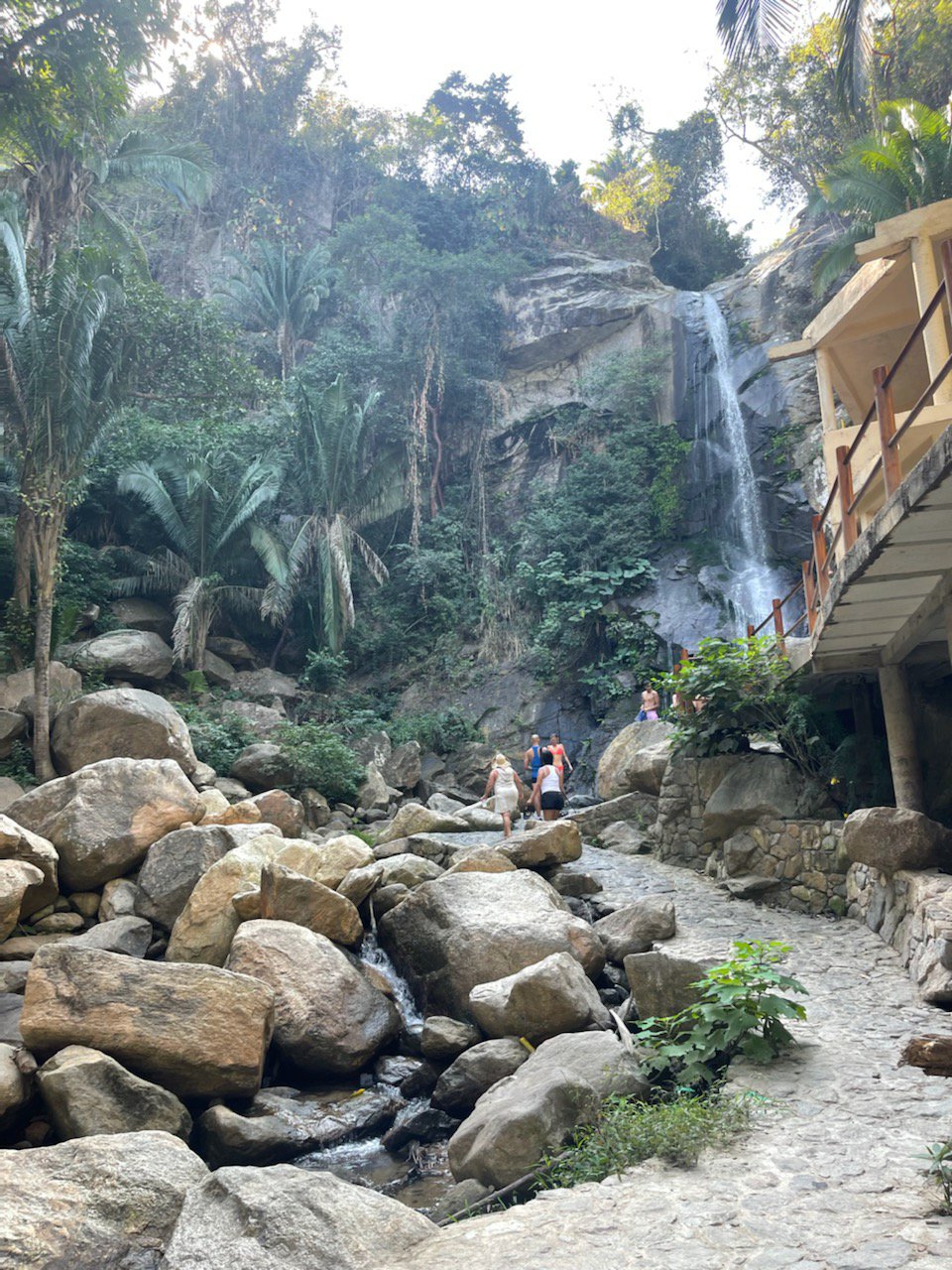 Our cruising friends all piled into a friends motor yacht and headed across the bay to the darling village of Yelapa (only obtainable by boat). The rickety homes and few restaurants all are on walking paths, since there are no cars. Two beautiful, cascading waterfalls are fun to hike up to. The indigenous people here have been here for centuries, dating back to 1581. The land is owned communally, making this little village a special treasure.
