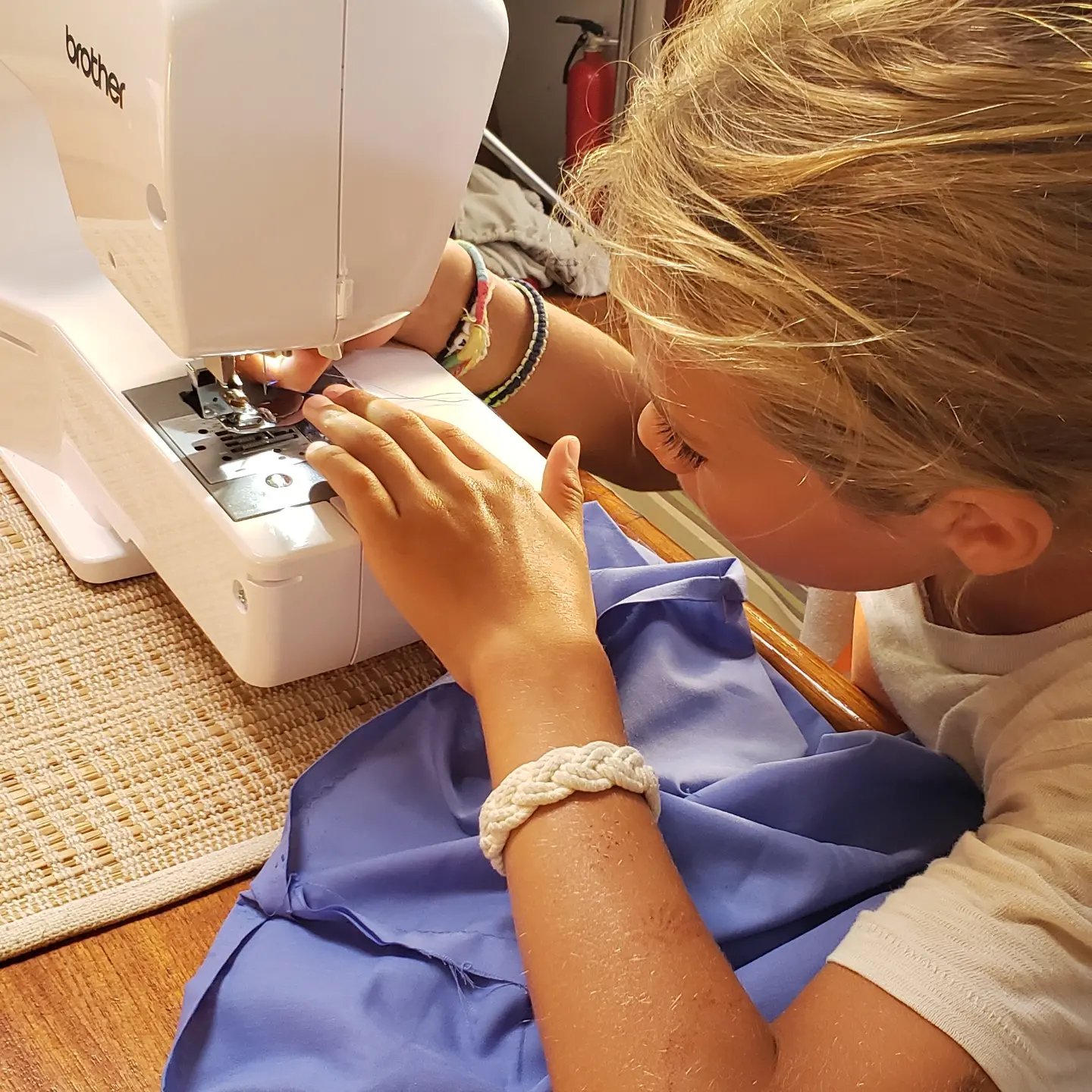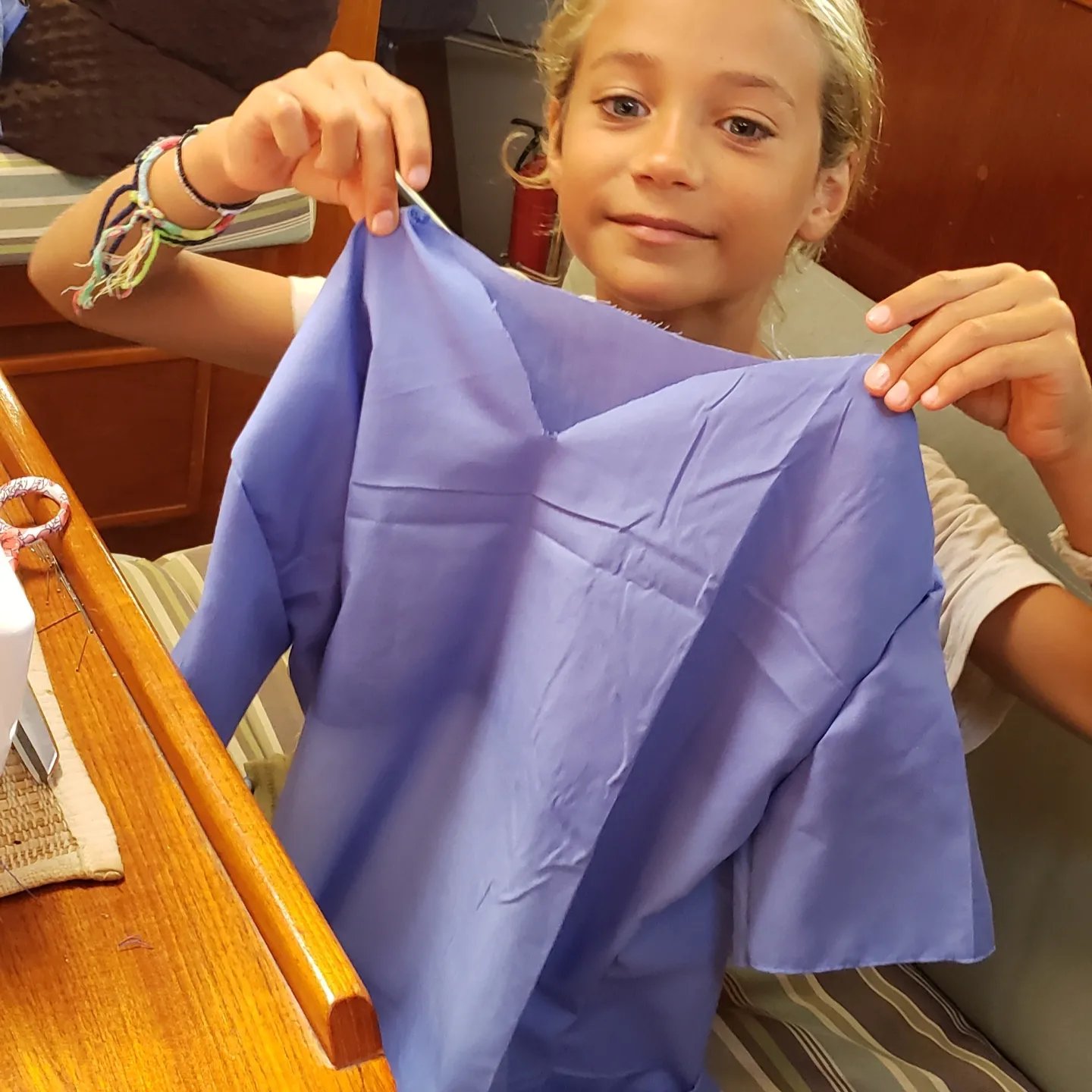 Hanging out with boat kids and families who cruise is such fun! The energy, curiosity and laughter is quite contagious! Children have a special place in my heart, of course, since I raised 4 kids and taught all ages for 31 years. I am so glad for my diverse career and always reflect with a smile. These last few days on at our calm anchorage, I have been teaching Luca to sew. He asked if he could make a shirt. He also said he really wanted to do it all himself. I happily took the challange. He was the best student ever! Patient, inquisitive, focused, willing, happy, helpful and incredibly polite!