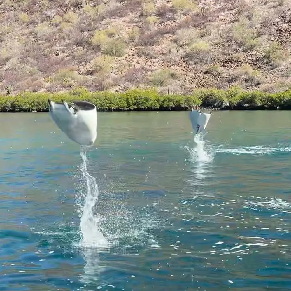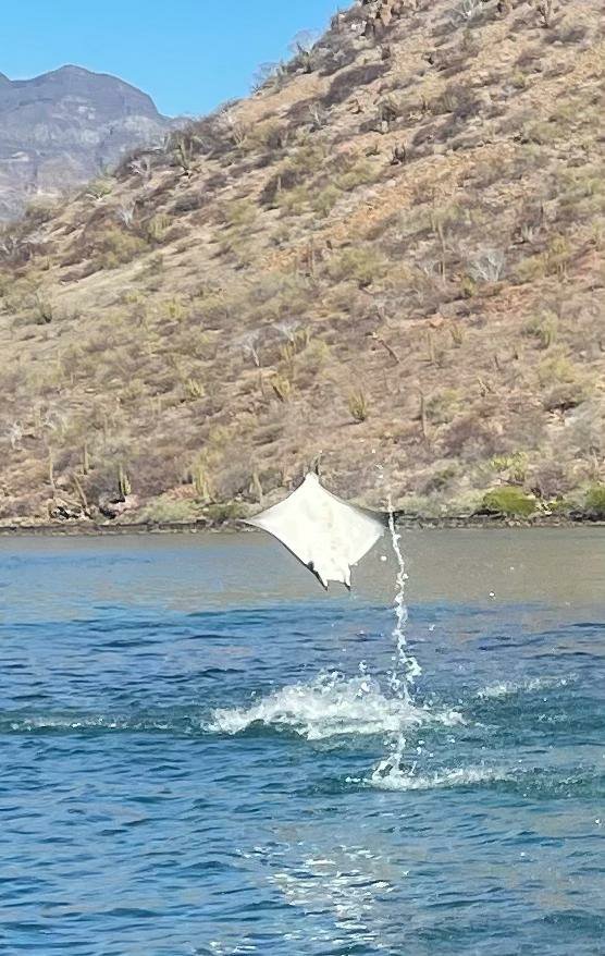 Mobula Manta Rays!!! We were in Puerto Escondido and this school of Ray’s swam by Sea Bella. I jumped in the dinghy as was entertained for an hour watching them leap from the water. Back flips, front flips and tall leaps only to land with huge slaps. Thousands under the boat! I thought they would jump right into the dinghy. These are plankton feeders.