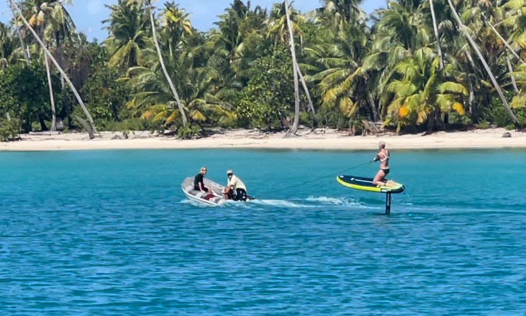 Starlink is a huge help, for the ease of researching the web or making a call to a mechanic. By noon, most sweaty sailors are ready for a jump in the ocean, nap or time to explore. By about 5 pm cruisers (from around the world) are ready to gather up for social hour, to meet new friends, sharing stories, drinks and snacks, discussing weather, sailing, projects, local news, travel ideas… So, I gather from these cruisers and others, that every day is kind of the same, but the people and places make it quite a unique lifestyle. Now for some fun shots and a video of Fun Times on our afternoons this month.