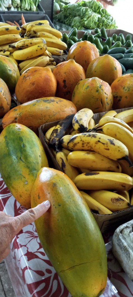-Bread fruit, bananas, pork, beef, coconuts, mangos, other root stock made up most of the food. Some I didn’t know.