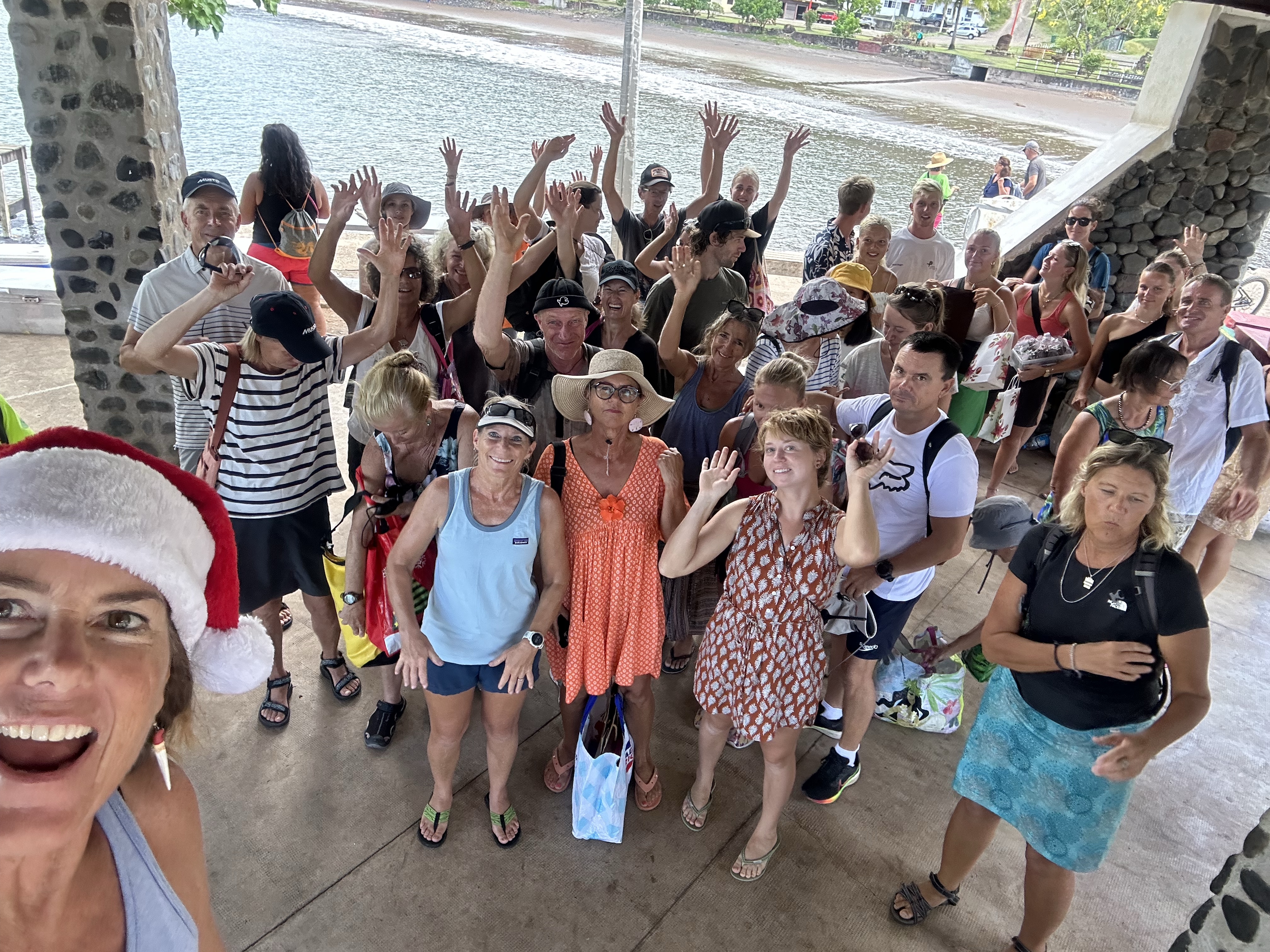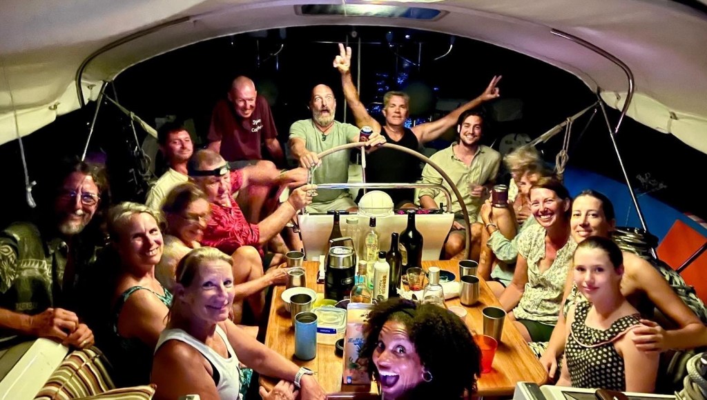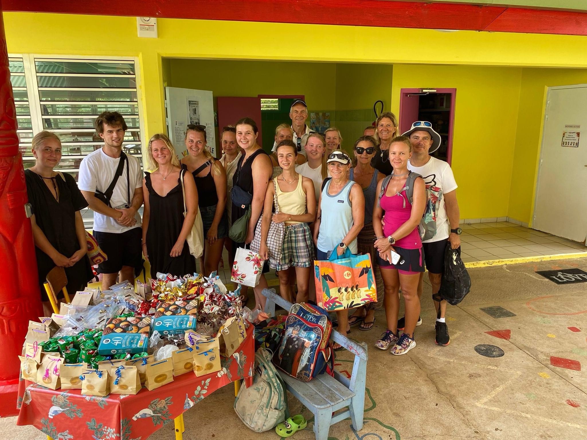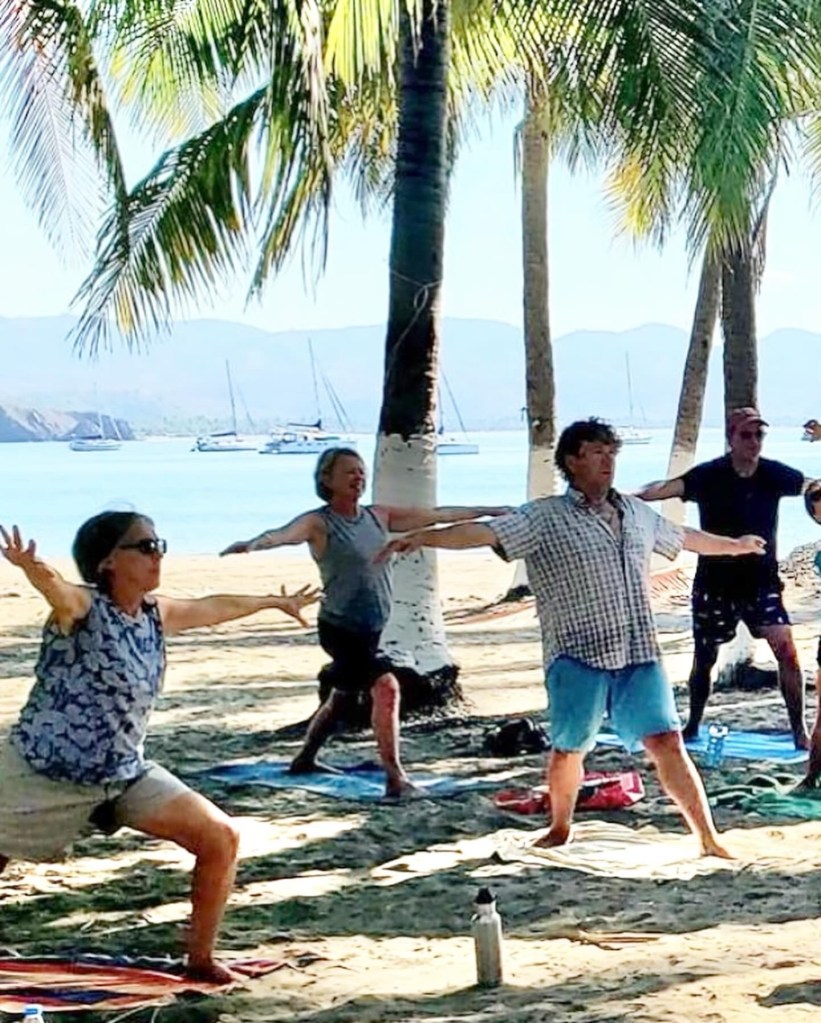 Testing out my new skills was easy and fun with my cruiser friends. I tried new poses, transitions, meditation themes and even stumbled my way with chatty children and a few locals at my side. The last day I was presented with a special card signed by all the Hooumi Bay sailors. Then they performed a ‘Trust Experience’ for me, where 20 students lifted me up, wow I felt so loved and cared for. I’m feeling inspired to do Yoga Around the World!