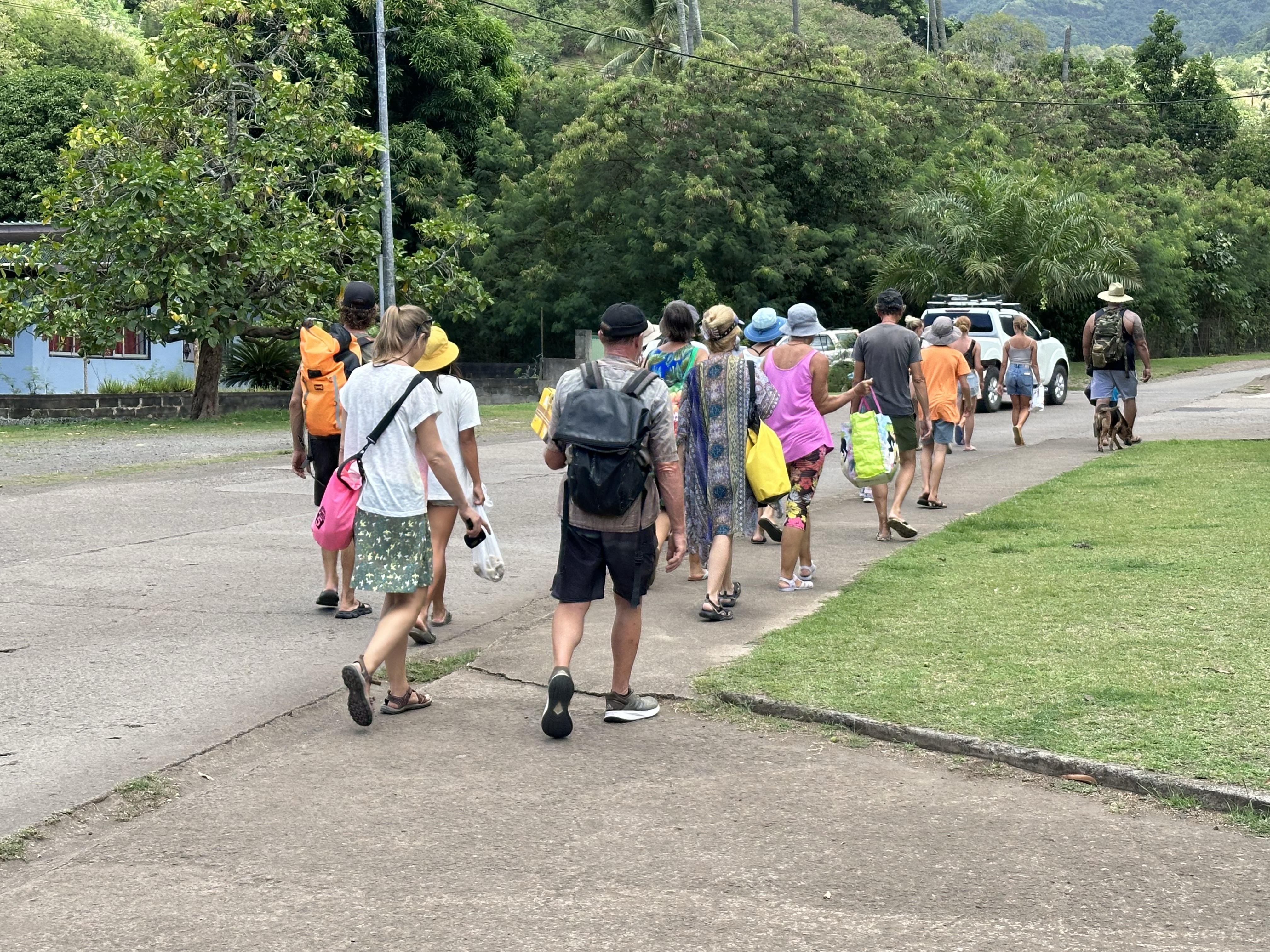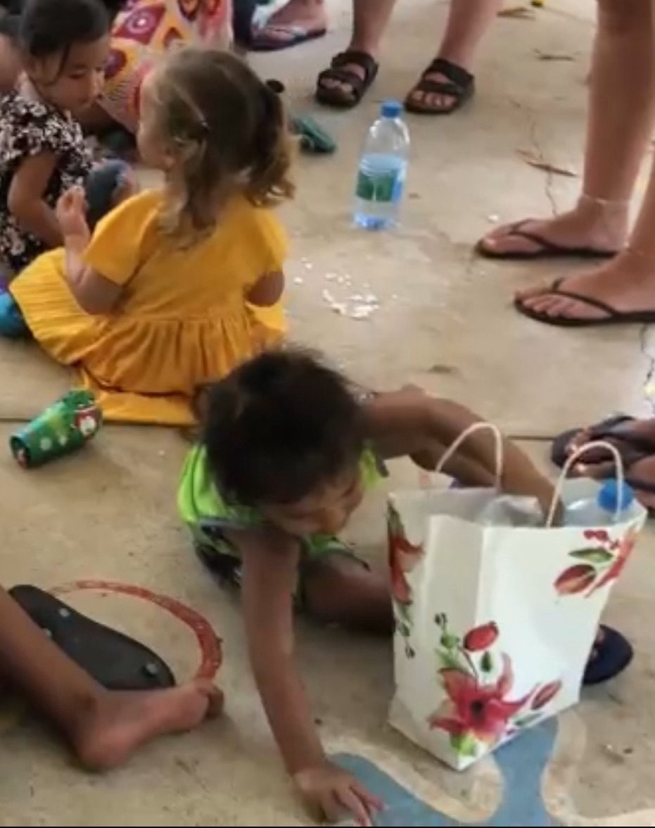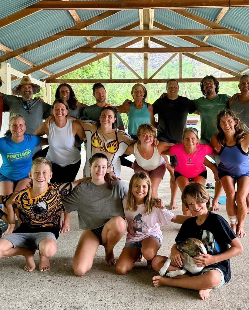 Some anchorages just have that super strong sense of community, it’s hard to pull anchor and leave. We have been so blessed in this small bay named Hooumi. 4 boats are our good friends from Mexico, 6 boats are new friends we met a few months ago here in FP. We feel like such family, with daily activities loosely organized by different people every day. The spontaneity and variety is just so cool. 19 friends showed up for my Yoga and meditation this morning, hugs of gratitude all around. Yesterday, some of us dingied up the river to a little village, bought a few staples and did cannon balls in the clear and refreshing river water with the local children.