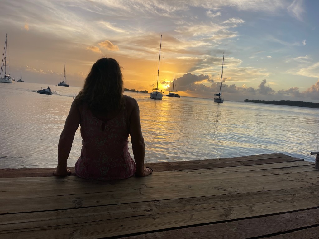 My projects aren’t perfect but they are mine and I am proud to have made them. I am a life long learner, finding great happiness in the process of a new challenge. This week was all about my canvas project of making a UV paddle board bag, all 11.3 feet of it! The last two covers I bought were wrecked by UV within a few months. A good cruiser friend of mine Chrissy, sold me a bolt of Grey Top Notch fabric, amazing fabric btw, but impossible to get out here in the islands. This challenge had perfect timing, since we had a bit of weather for hunkering down and Scott was down for the count with a bad cough. Sewing for me is quite therapeutic, gives me inner peace and energy at the same time! Now off to see the sunset.