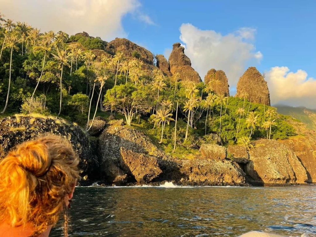 You can sail from Hiva Oa to the southern most Marquesan island, Fatu Hivu (the beatiful Bay of Virgins). It was named something else, you can guess.