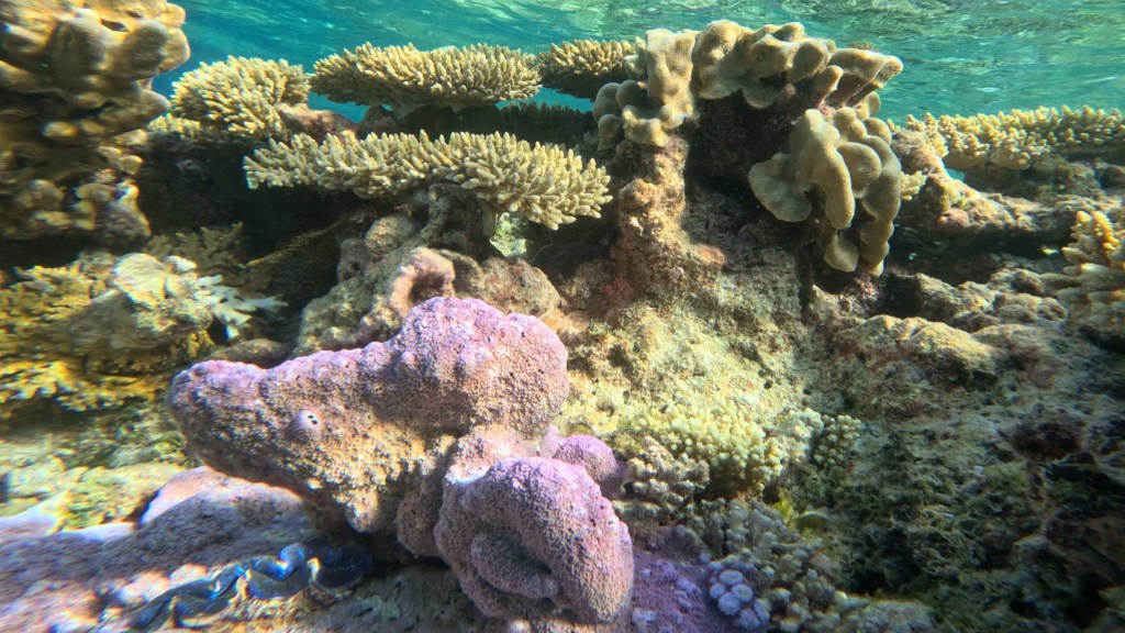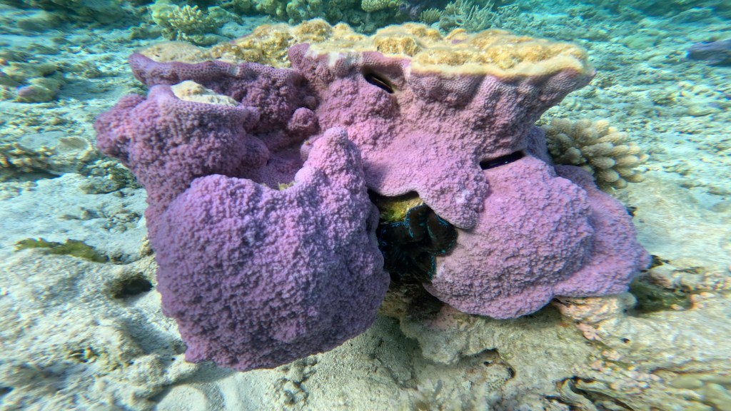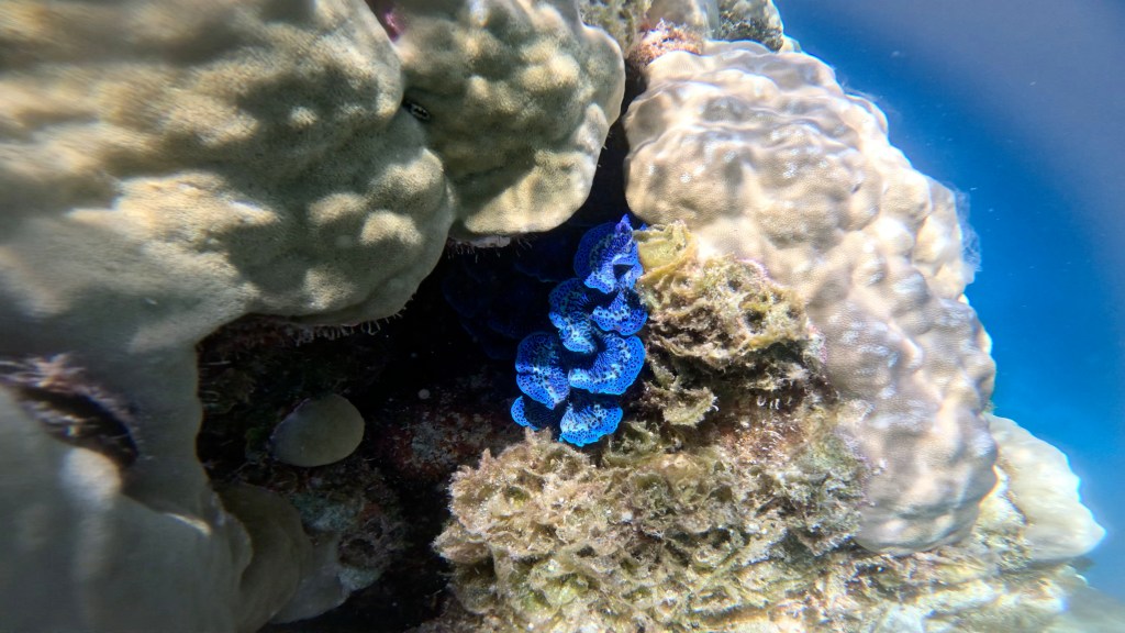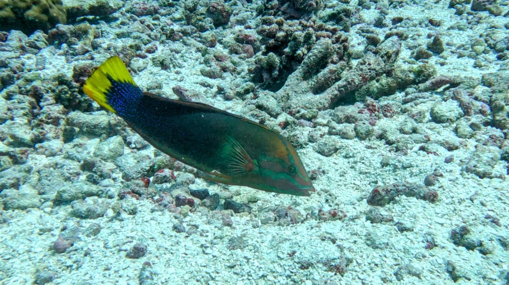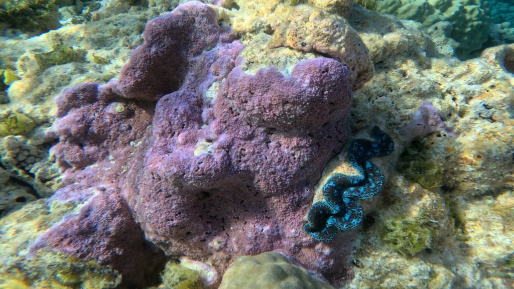 There is one special coral head in the center of the Tuomotu Archipelago Makemo that we were mesmerized with. We kept going back, again and again. Not sure why this one had so many more colorful and shapely corals, and huge clams than we have seen in the 17 islands that we have been to this sailing season. Below our video is (the photo dump).