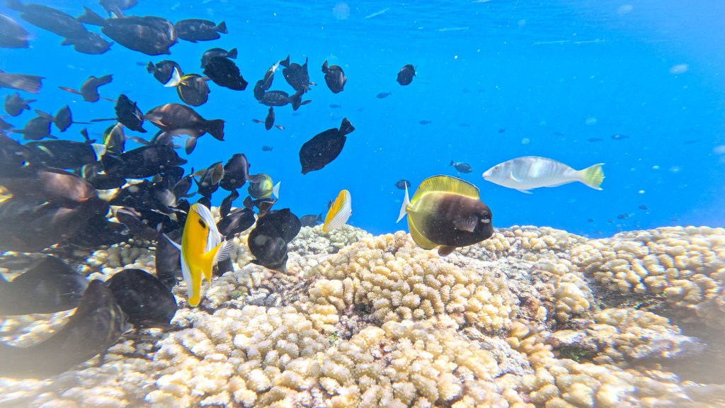 Its safe to snorkle right near their feeding path. These 15′ wide giants would feed ladder style, one on top of the other, to catch the most plankton. Then, they would somersault or do an about-face and return on the same path.