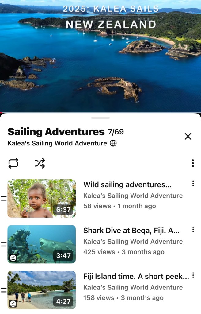 We realized to save and share longer sailing, scuba or adventure videos we needed a YouTube channel. Kathy also became a certified YOGA teacher, for in person and online videos. She has quite a following with dozens of healthy, calming seasons on YouTube: @kaleasailingadventure